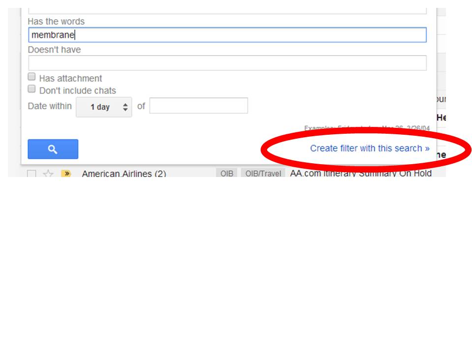 And there it hangs, anytime you use gmail, “Create A Filter.” Click on the button. Bang. It does just that.