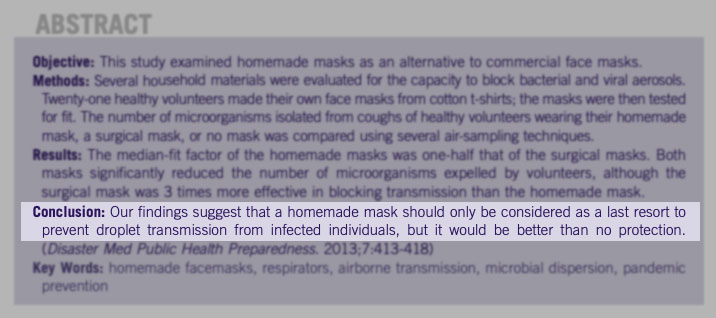 These articles cite a primary source as their inspiration: (2013) “Testing the Efficacy of Homemade Masks: Would They Protect in an Influenza Pandemic?”