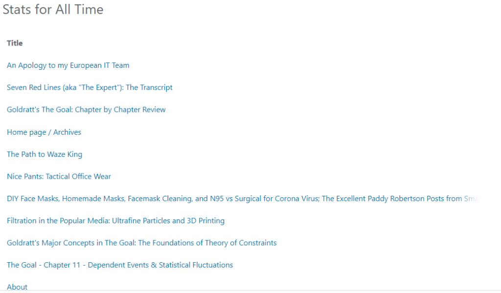 It was easy to follow the readership and click metrics that are generated by WordPress. As I wrote on topics I could see which ones picked up traction and which did not. I’ve enjoyed working in niche areas of manufacturing and finance, which meant my target audiences were always going to be slim. As I wrote about the industrial topics I was interested in professionally – filtration, customer service, electrospinning, membranes, biopharma and others – the difference between a ‘big hit’ writing and a piece that was a dud could be just a few hundred clicks or readers.