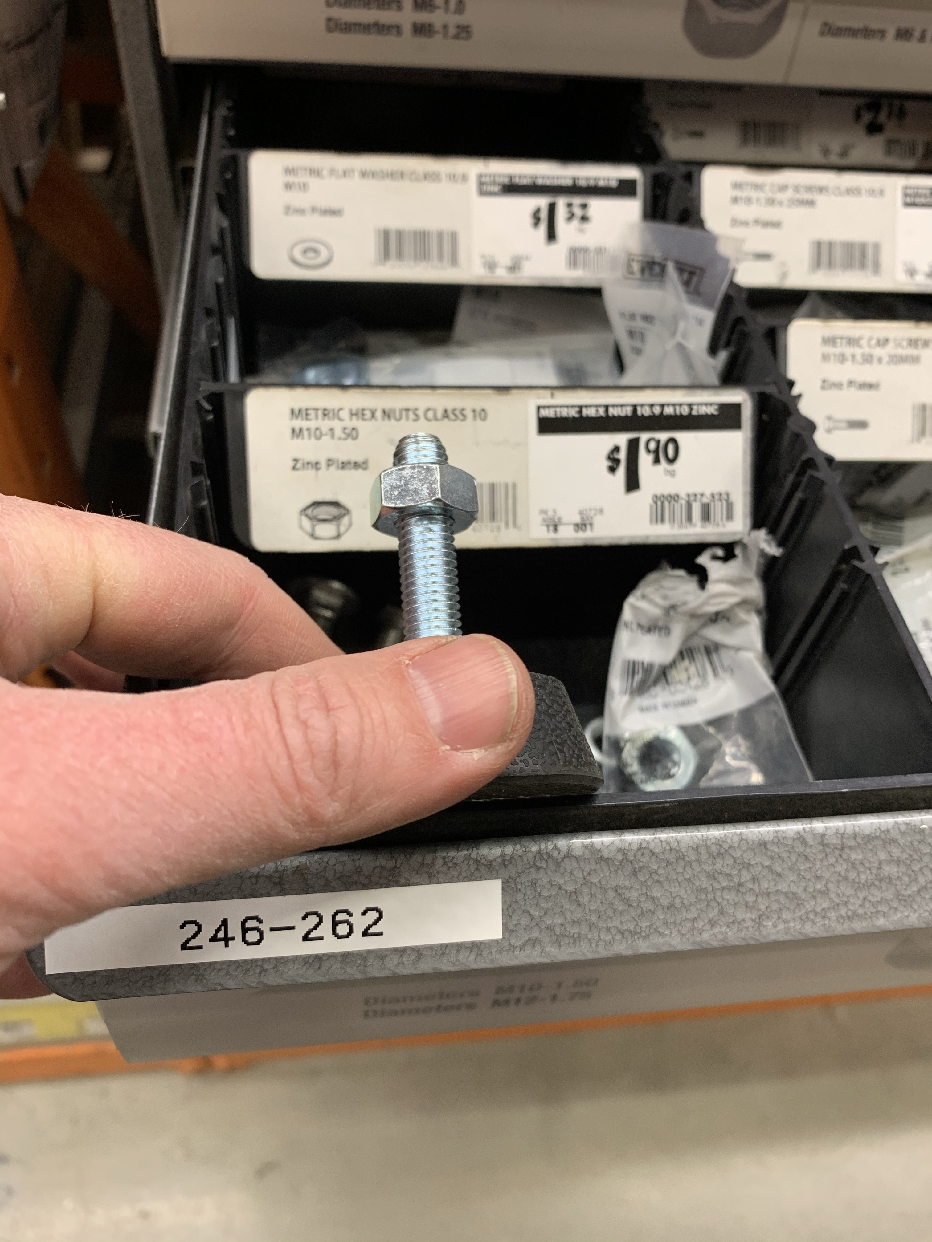 Finding the right size bolt – it is M10 a 1.5 for the Peloton leveling feet -