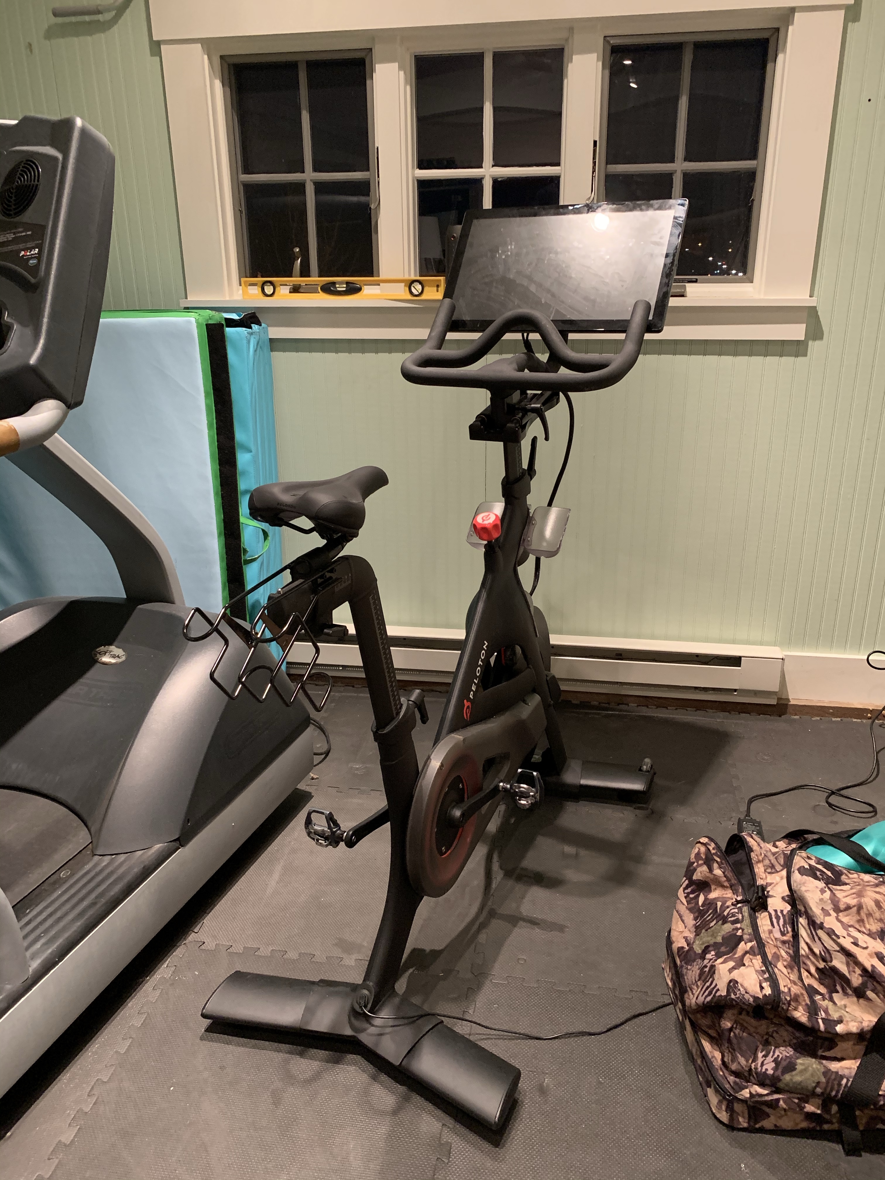 A happy, level, Peloton – made possible with M10 – 1.5 sized bolts and nuts available at Home Depot, Lowe’s or Wal-Mart.