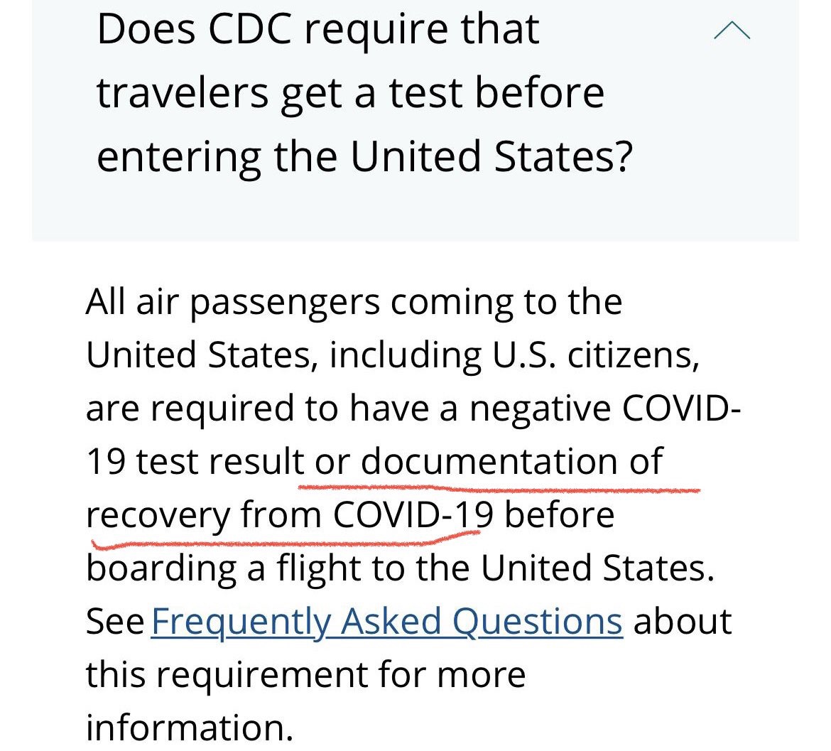 - CDC recognizes ‘recovery’ as a source of immunity for travelers into the US.