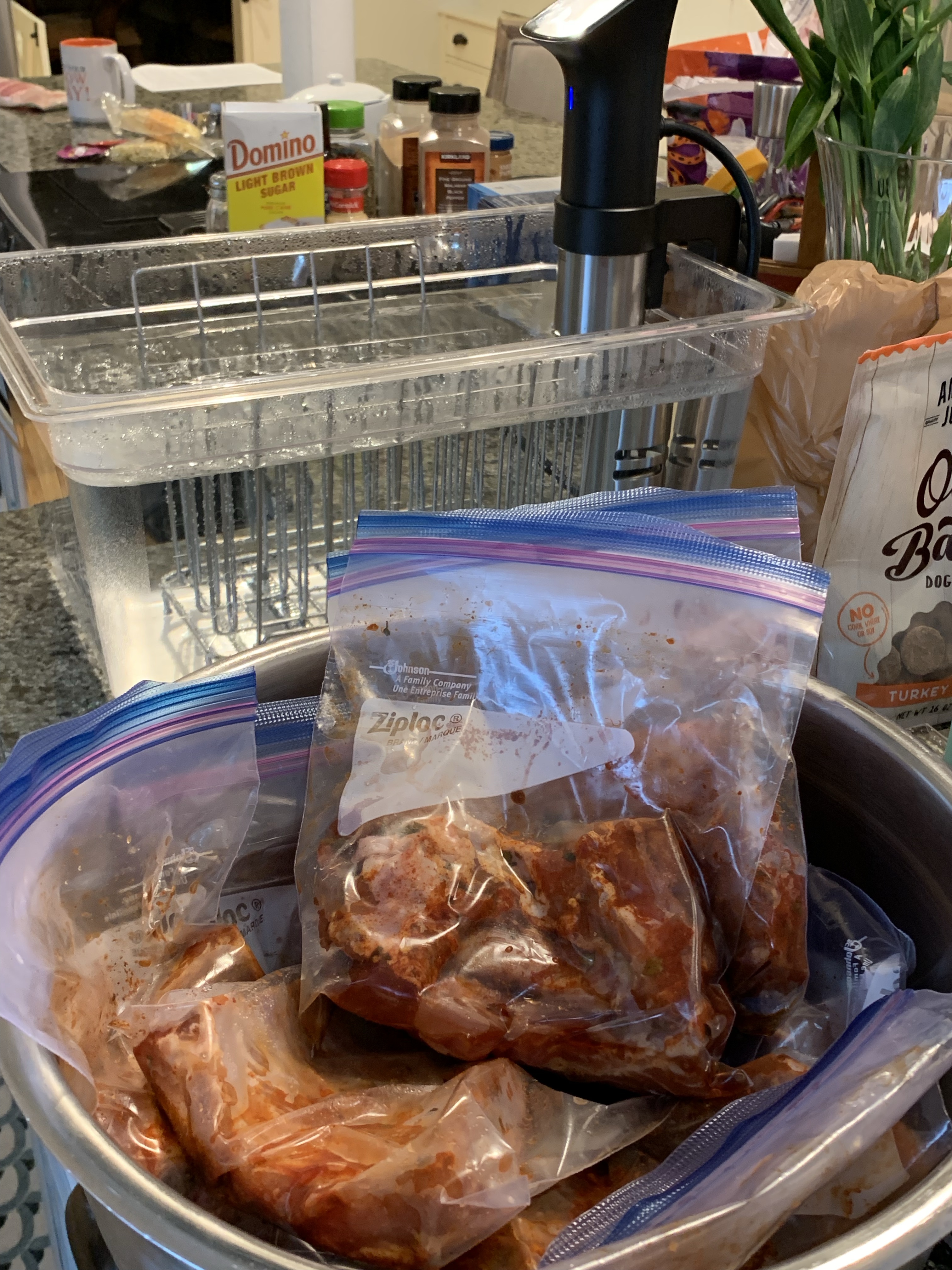 Prior to using a sous vide cooker, the household favorite recipe was the Rattlesnake Ribs from The New Basics Cookbook from the authors of the Silver Palate Cookbook. We’ve tried several sous vide recipes, and particularly like the Serious Eats recipe. (The good 3×3 of results vs time and temperature is from their website.) We also like the FitFoodie recipe.