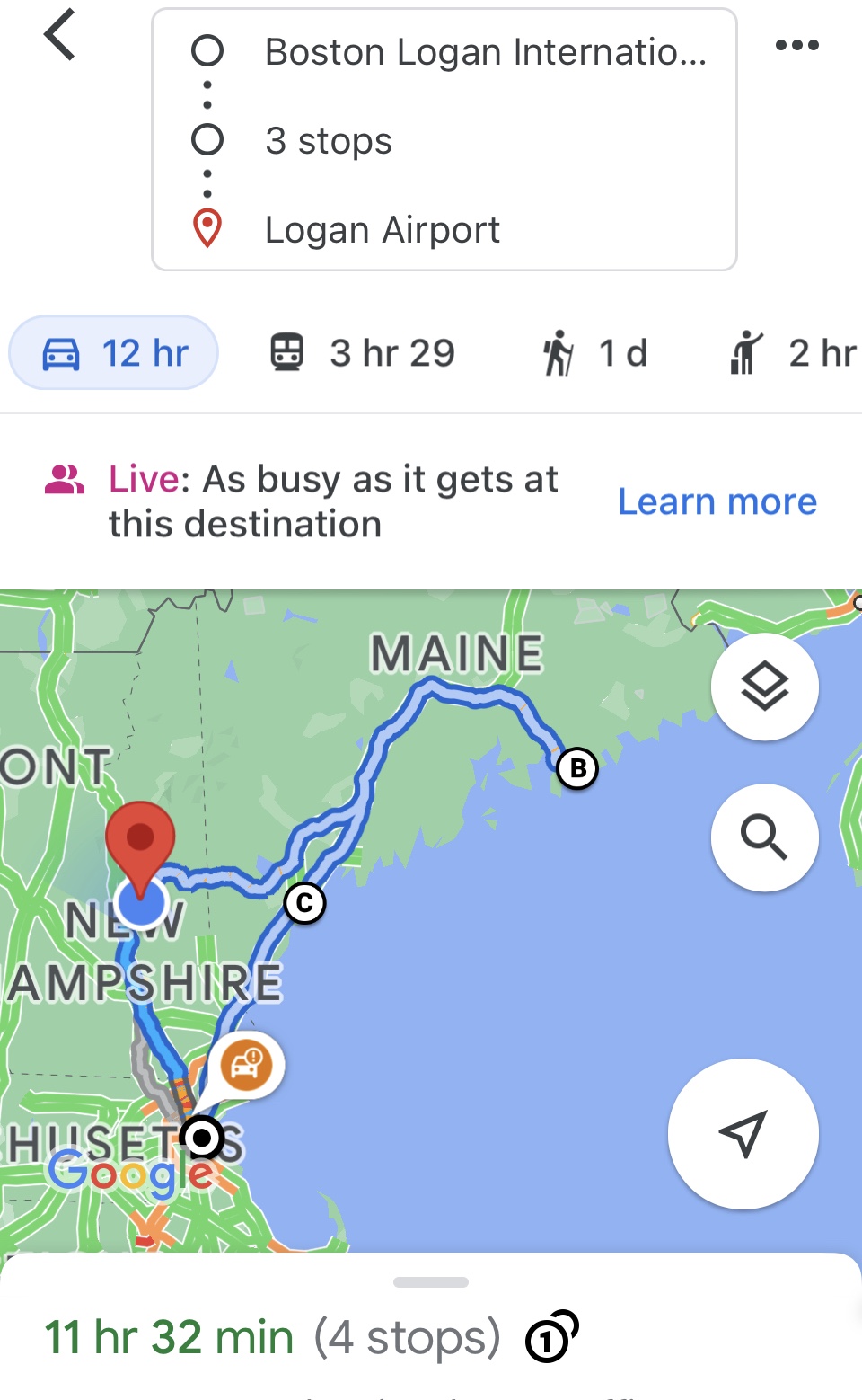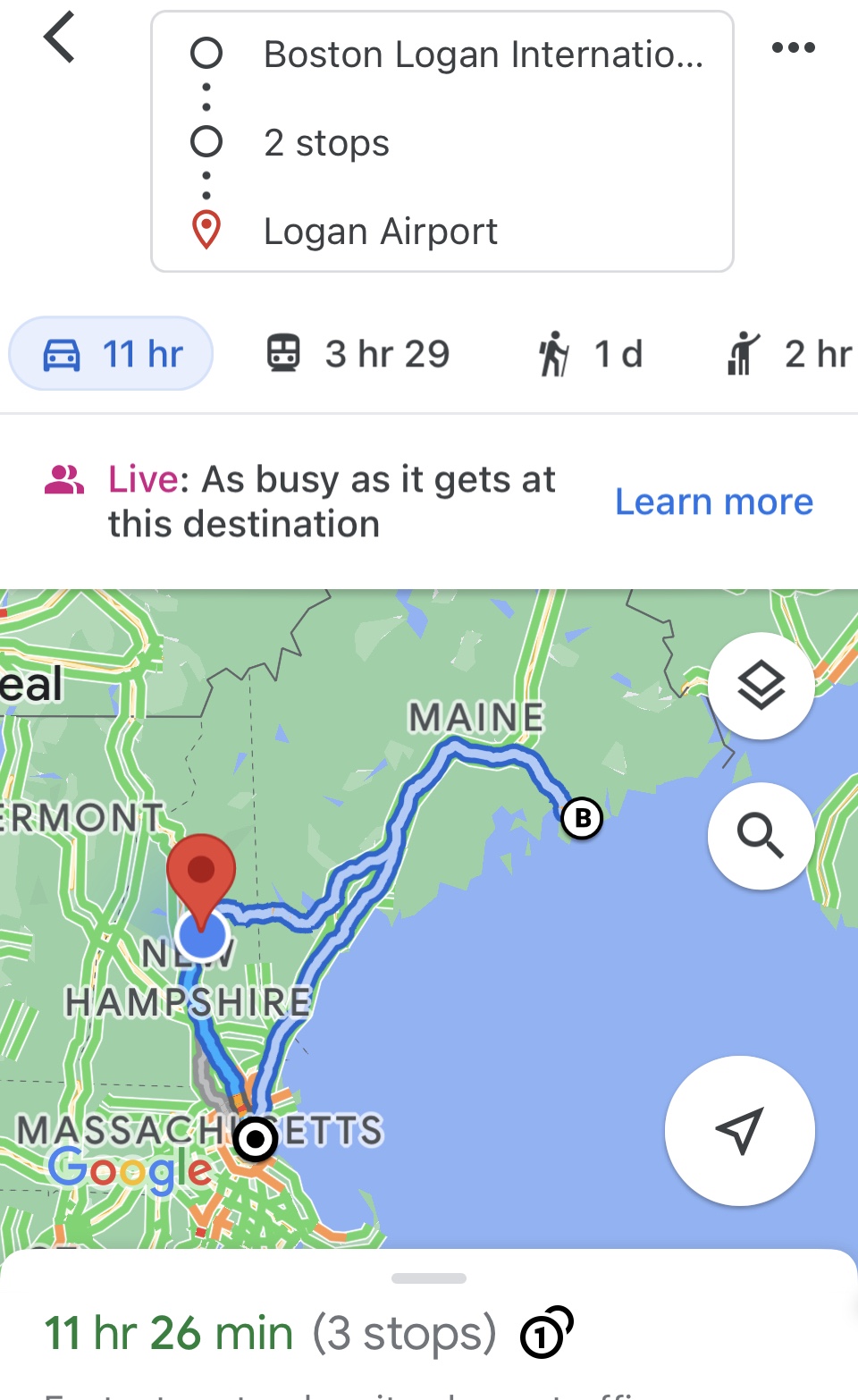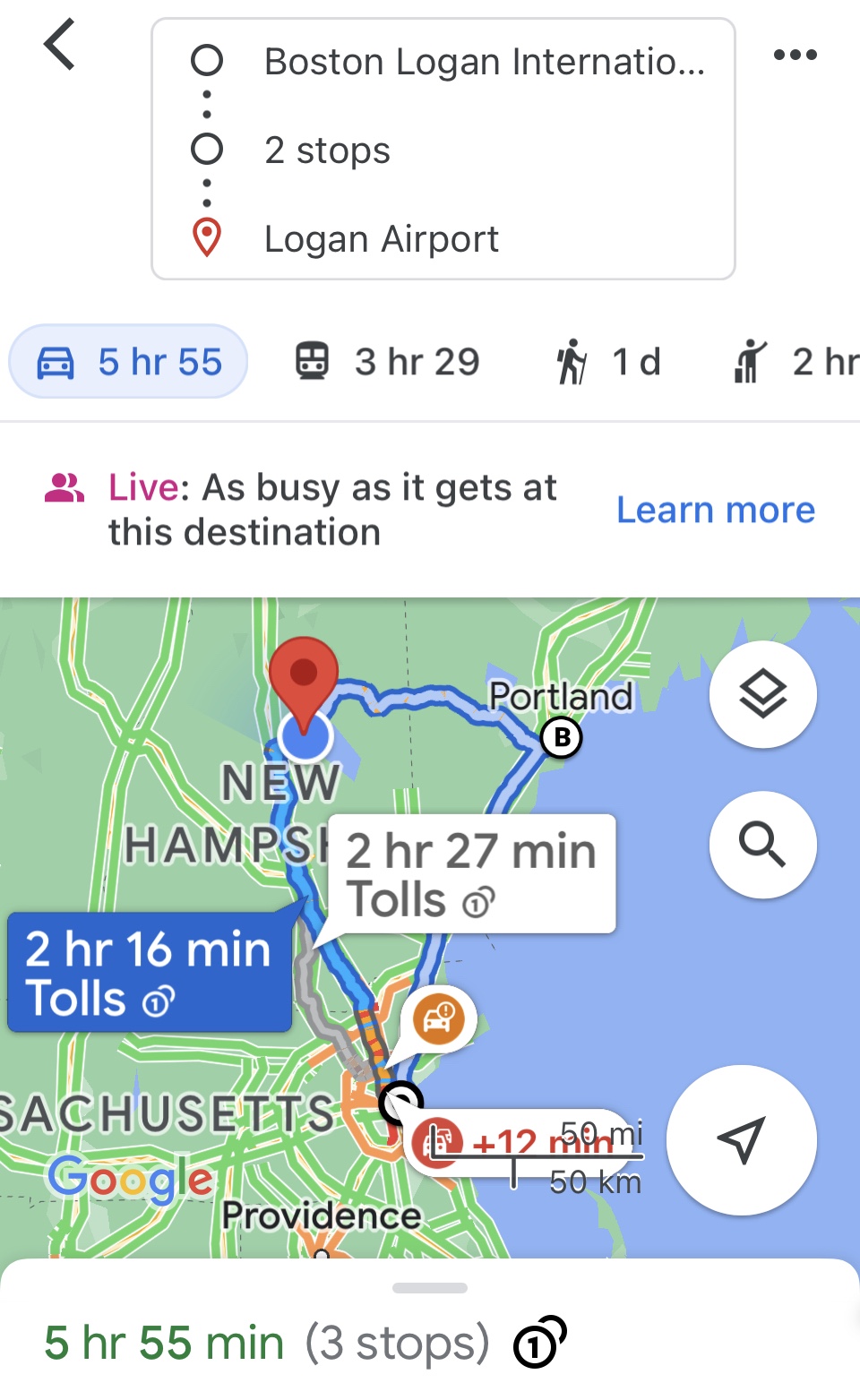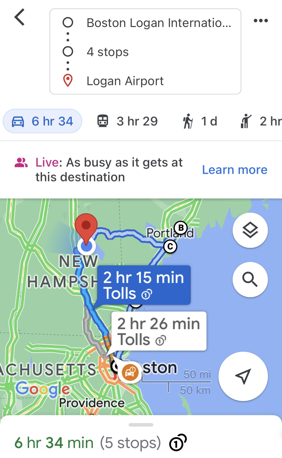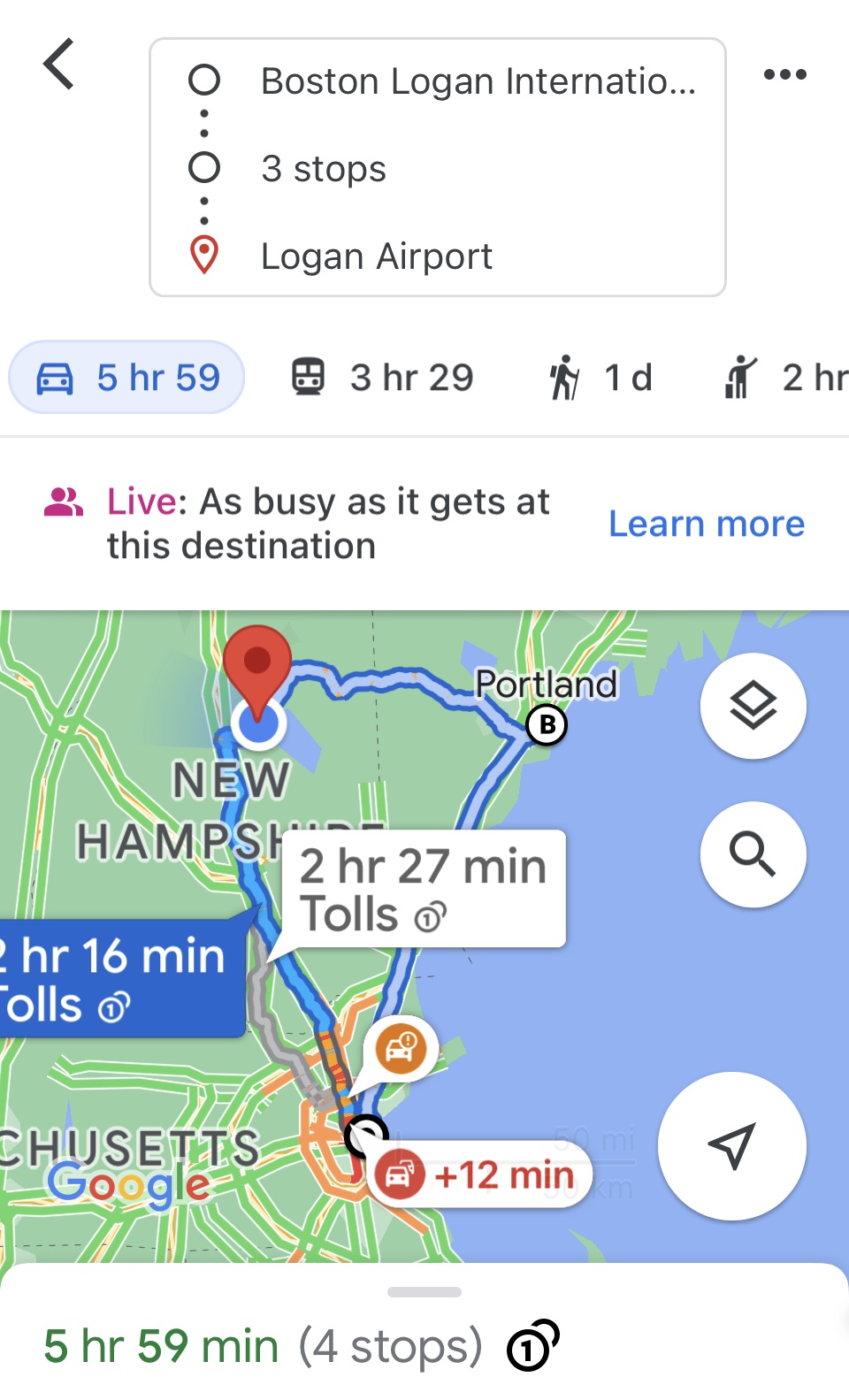 - Portland, ME to Boston takes 2 hours